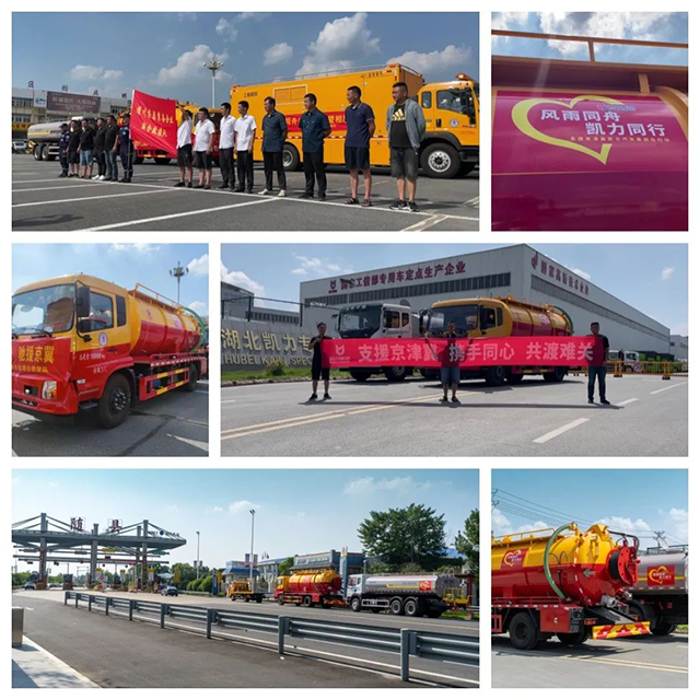 此次随州应急装备企业联合救援队共出动应急救援专用车辆10台,20名应急救援队员,涉及清洗吸污、地面高压冲洗、应急救险、道路清障、洗扫车等,凯力汽车集团首批派出洒水车和清洗吸污车应急装备2台和3名工作人员随队出征,将为灾区街道清扫清淤、地面冲洗和管道疏通、吸污提供有力支持。
