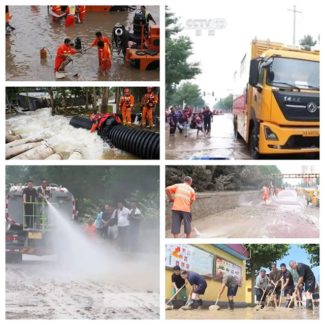 目前,河北省涿州市部分积水区域水位已开始下降,除搜救任务外,医疗服务、道路清淤、排涝等工作也在同步开展。救援车队星夜兼程千里奔赴到达涿州即刻投入工作,凯力风洒水车和清洗吸污车也第一时间投入到对城市路面进行冲洗、清扫以及对受灾严重的小区进行排涝、清障、吸污、清洗,清洁工作,效率非常高,受到当地应急管理部门和广大涿州市民的高度认可。